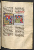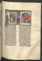 Vienna, Österreichische Nationalbibliothek, 2561, f. 234r. Filippa viene scoperta dal marito durante l'adulterio; la donna si difende dinanzi al giudice e fa cambiare lo statuto della città di Prato.