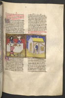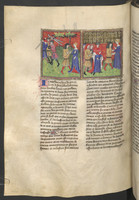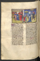 Vienna, Österreichische Nationalbibliothek, 2561, f. 165r. Gerbino abborda la nave della figlia del re di Tunisi, la quale viene abbandonata su una scialuppa; il re di Tunisi, alla presenza di Guglielmo II di Sicilia, fa decapitare Gerbino.