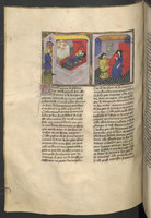 Vienna, Österreichische Nationalbibliothek, 2561, f. 199v. Lizio da Valbona sorprende la figlia Caterina a letto con l'amante Ricciardi; Lizio acconsente al matrimonio della coppia.