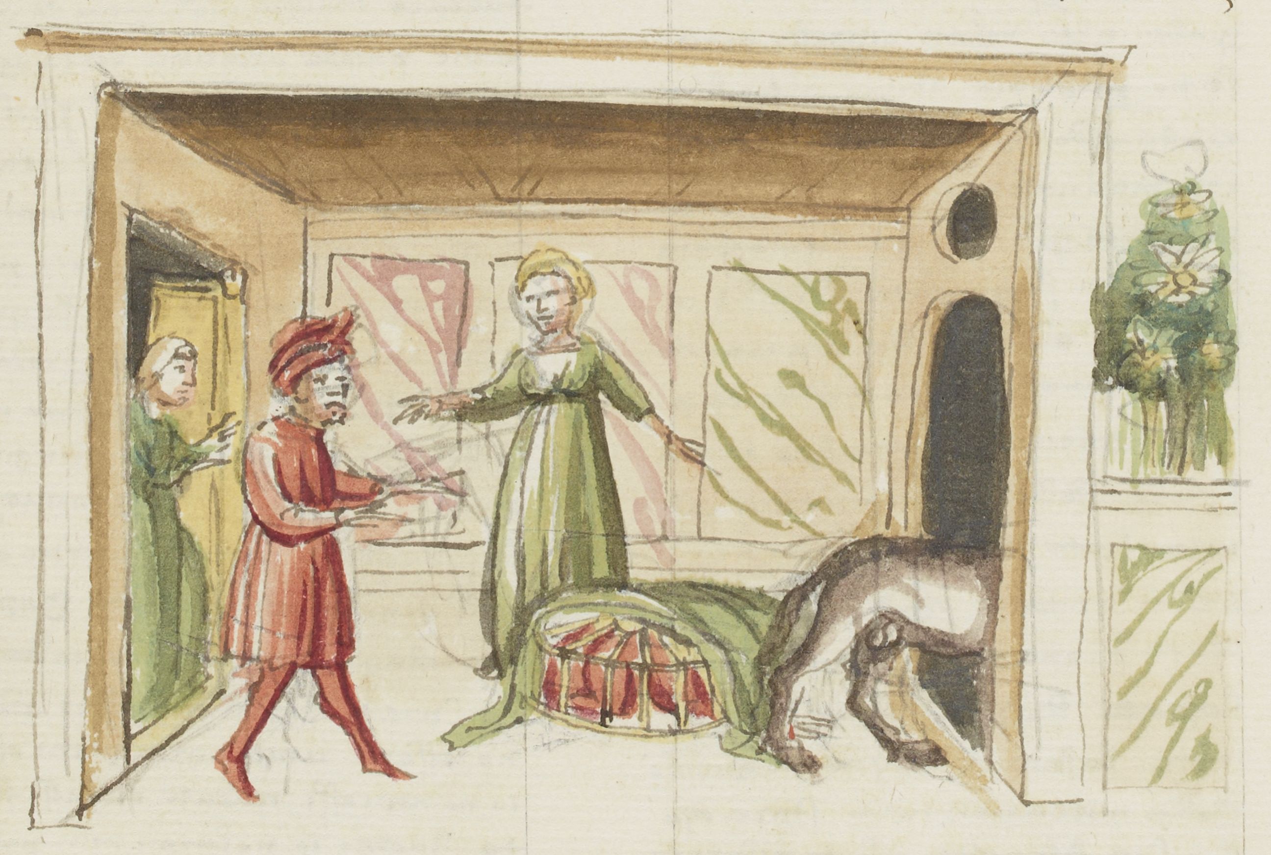 Miniatore fiorentino (1427-1430), Pietro di Vinciolo scopre l'amante della moglie
