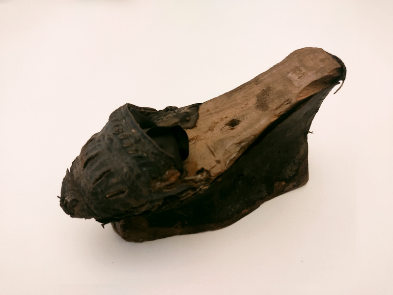 Ritrovate nel corso della seconda guerra mondiale in seguito ad un bombardamento che colpì la Casa del Boccaccio, le nove scarpe da donna spaiate furono custodite dalla Soprintendenza per i Beni Artistici e Storici delle Province di Firenze e Pistoia fino al 1977. Riconosciute come da verbale di consegna del 16 novembre 1977, della stessa Soprintendenza, «oggetti d’arte di fine secolo XIV e principio secolo XV», sette paia furono “riportate a casa” mentre altre due restarono a Firenze, esposte nel Museo Davanzati, dove sono tuttora.