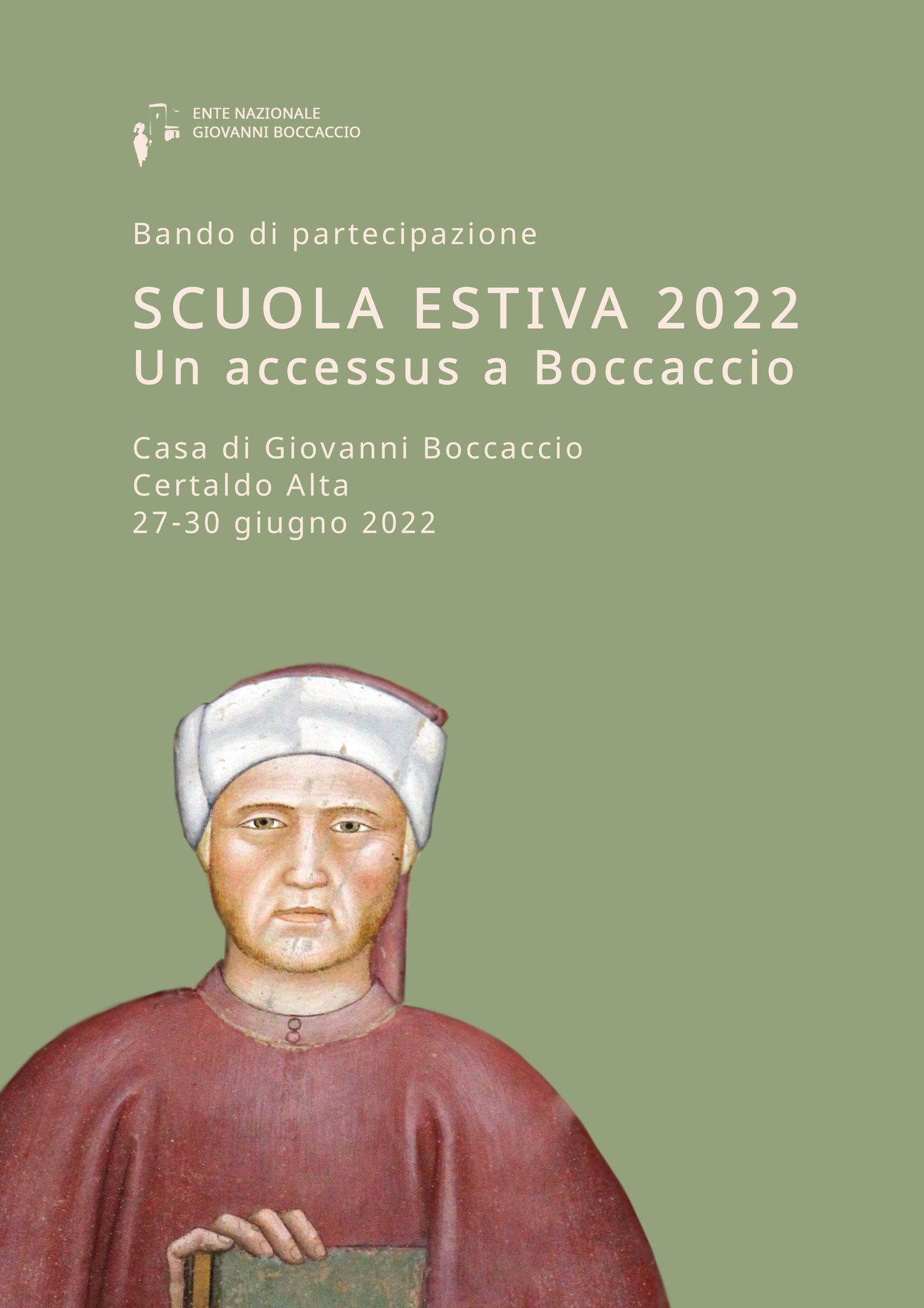L’Ente Nazionale Giovanni Boccaccio organizza a Certaldo, nella casa di Giovanni Boccaccio, una Scuola estiva rivolta a studiosi in formazione e dedicata all’opera di Giovanni Boccaccio, alla sua fortuna, agli strumenti critici per la sua interpretazione. Essa prevede lo scambio e l’acquisizione di metodi e problemi legati alla ricerca, in un ambito multidisciplinare di carattere letterario, filologico, linguistico, paleografico-codicologico, storico-artistico, in grado di offrire un’occasione di riflessione critica, di formazione metodologica, di aggiornamento storiografico.