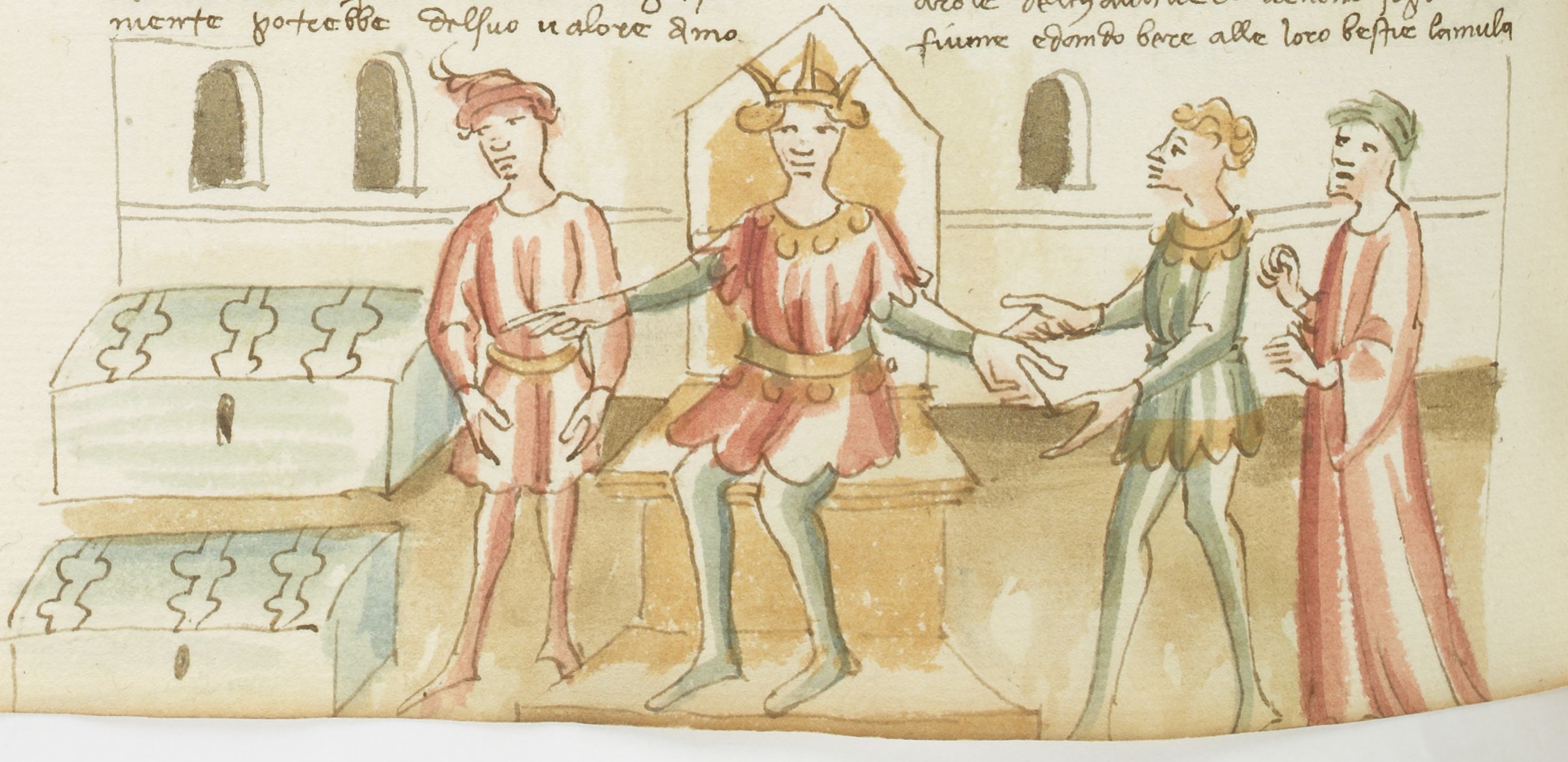 Miniatore fiorentino (1427-1430), Re Alfonso invita Ruggieri a scegliere tra due forzieri