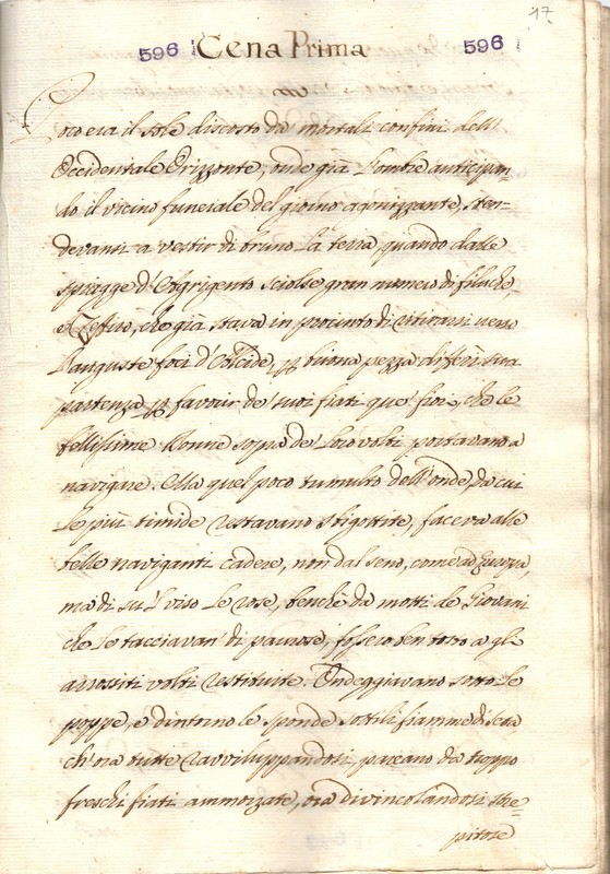A f. Ir: N. 7 inventario. Su numerosi fogli si ripete il timbro con il numero 596.