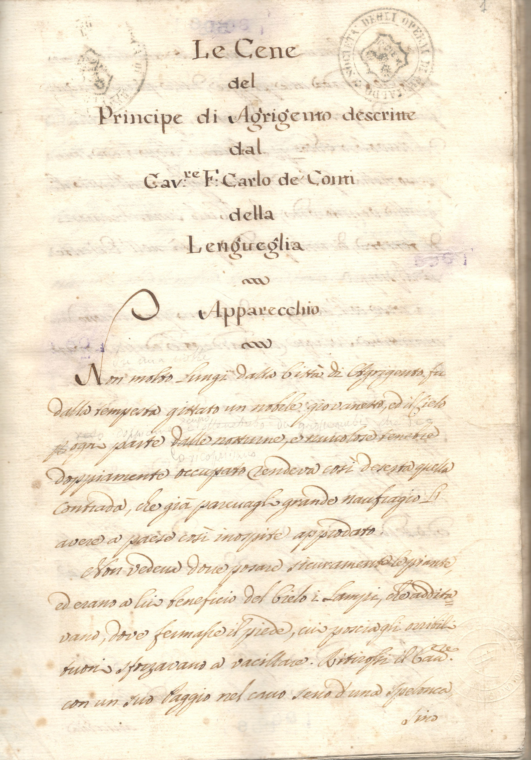 ff. 1r-86v Carlo della Lengueglia, Cene del principe d’Agrigento.