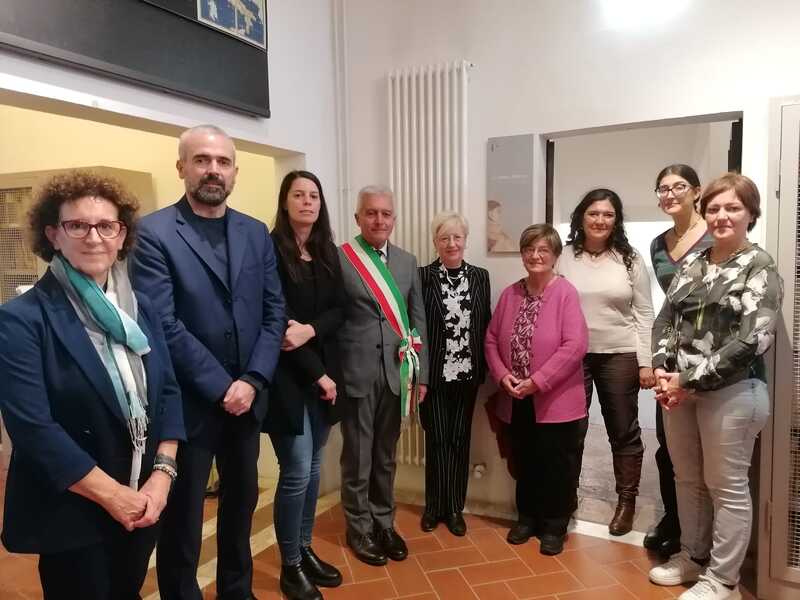 In foto da sinistra: prof.ssa Ersilia Menesini, senatore Dario Parrini, assessora Clara Conforti, sindaco Giovanni Campatelli, prof.ssa Giovanna Frosini, prof.ssa Lia Zamponi Luchetti insieme alle figlie Letizia e Francesca e la nipote Irene.