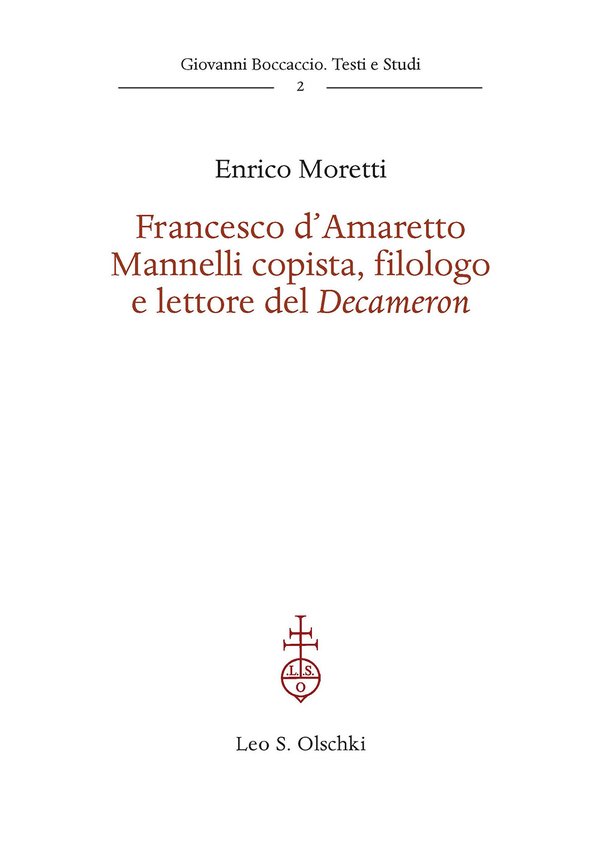 Francesco d’Amaretto Mannelli è forse il copista che maggiormente ha influenzato la ricostruzione testuale e la ricezione di alcune opere di Boccaccio. Nel panorama dei copisti del "Decameron", infatti, Mannelli si caratterizza non solo per l’elevato e costante grado di attenzione in fase di copia e per una notevole competenza sul versante linguistico-interpretativo, ma anche per un inedito scrupolo nel segnalare molti dei suoi interventi così da tenerli distinti dall’originaria lezione autoriale. Il presente volume esamina il rapporto tra la sua copia del "Decameron" e la tradizione manoscritta, a partire dal codice trascritto direttamente da Boccaccio, e offre l’edizione critica e commentata di tutte le postille lasciate da Mannelli in margine al testo.