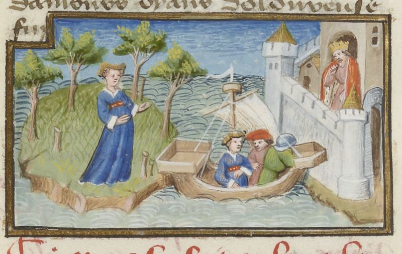 Scuola del Maestro del Duca di Bedford (1430 c.), Gostanza si trova a Lipari; la donna salpa per ricongiungersi con Martuccio