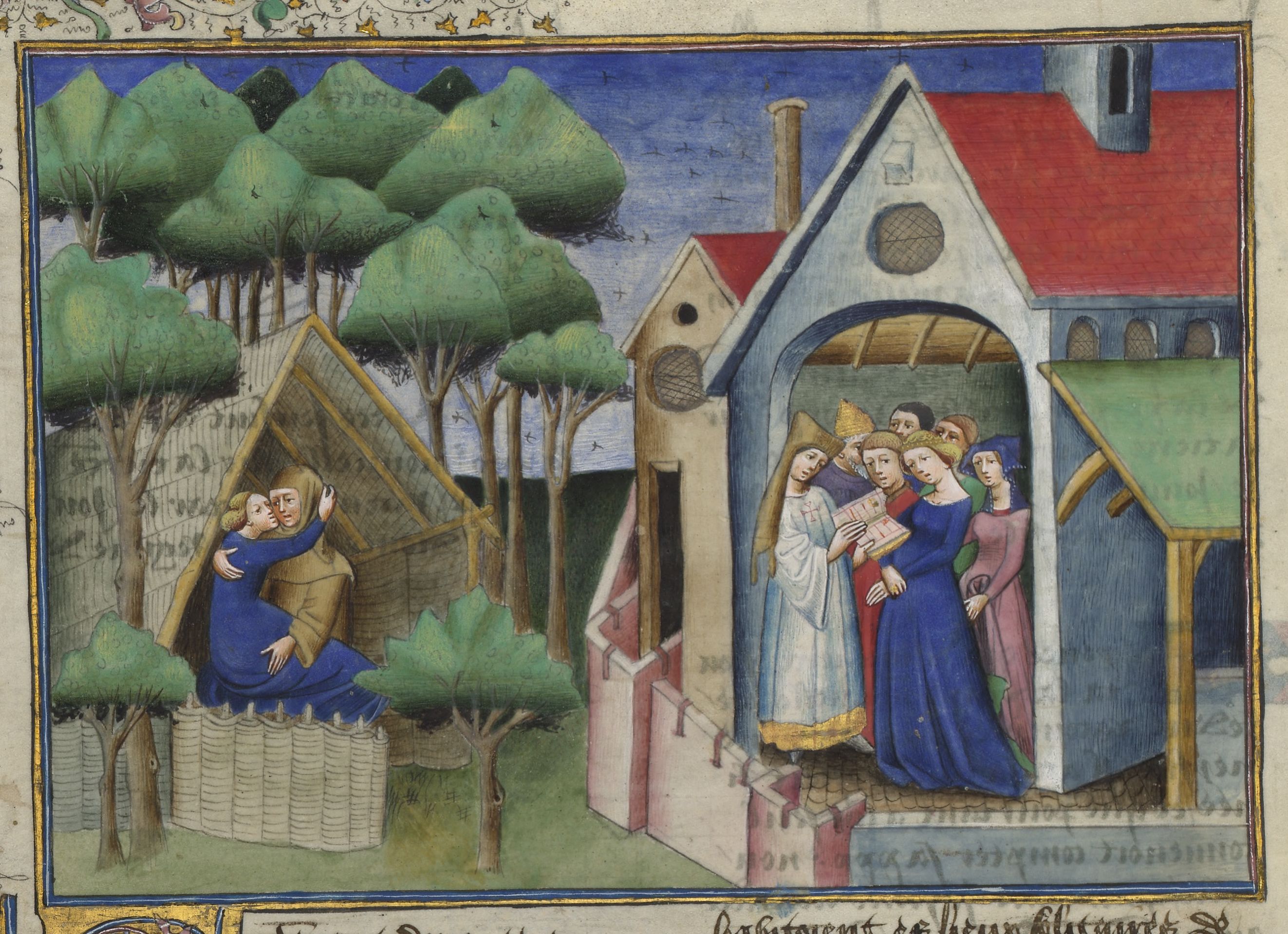 Maestro di Guillebert de Mets (1430-1450), Alibech giace con l'eremita; Alibech si sposa con Neerbale