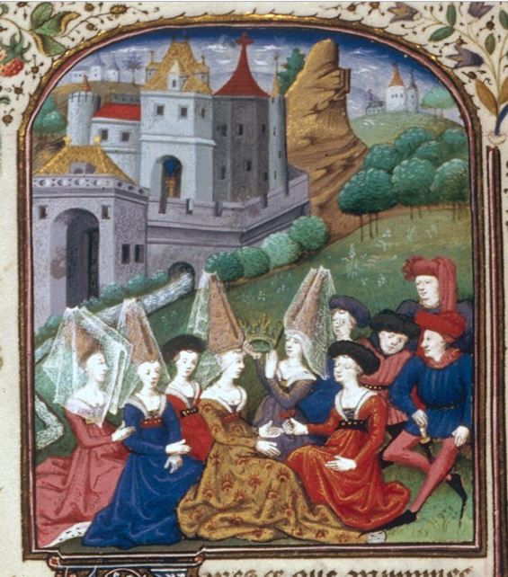 Scuola del Maestro di Bedford (1460 c.), Pampinea viene incoronata regina