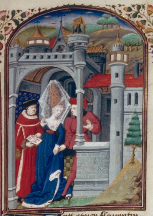 Scuola del Maestro di Bedford (1460 c.), La moglie di Ricciardo finge di non conoscere il marito