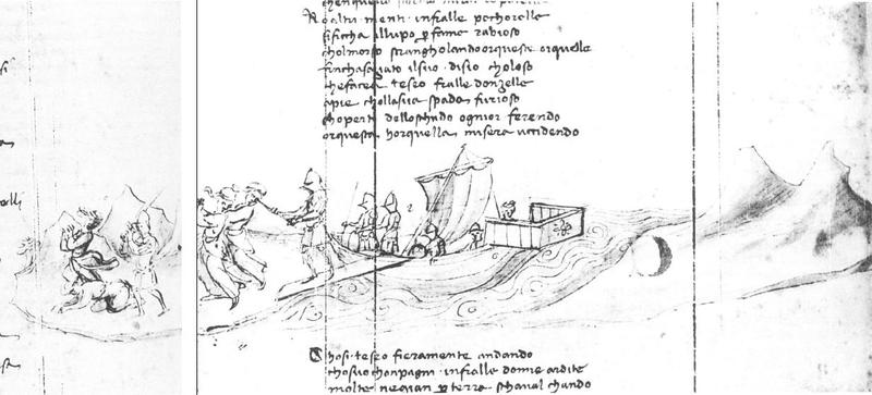 Napoli, Biblioteca Statale Oratoriana del Monumento Nazionale dei Gerolamini, C. F. 2.8, ff. 10v - 11r. Il copista del manoscritto è Guido di Piero di Giovanni de Ricci. L'illustrazione si estende su due carte, e rappresenta lo sbarco dell'esercito greco e la sconfitta delle Amazzoni in battaglia.