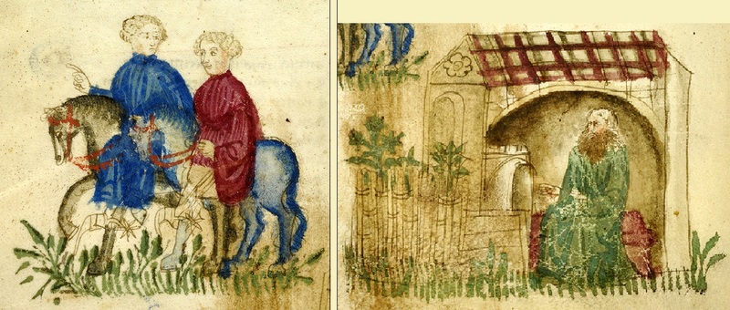 Miniatore napoletano (1414), Troiolo e Pandaro a cavallo; Sarpedone nella sua tenda