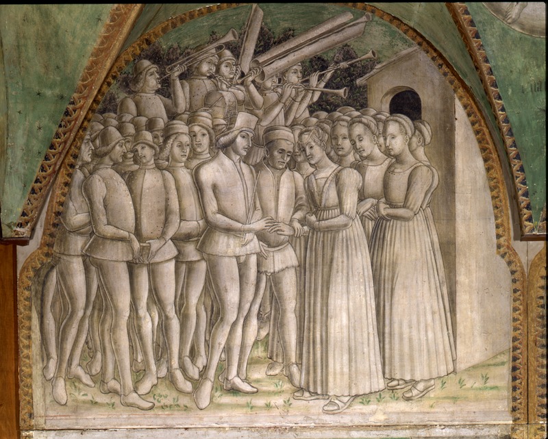 Milano, Pinacoteca del Castello Sforzesco, inv. n. 1347/08. Giannucole unisce Gualtieri e Griselda in matrimonio alla presenza della corte del marchese.