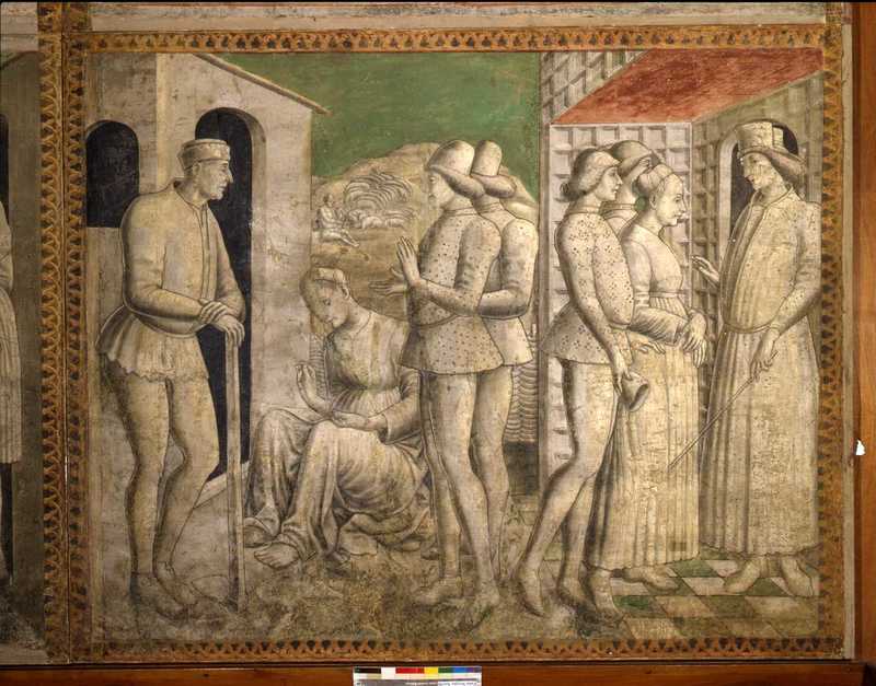 Milano, Pinacoteca del Castello Sforzesco, inv. n. 1347/19. Due messi inviati da Gualtieri si recano presso la casa di Giannucole per convocare Griselda al castello; Gualtieri ordina a Griselda di compiere i preparativi per le sue seconde nozze.
