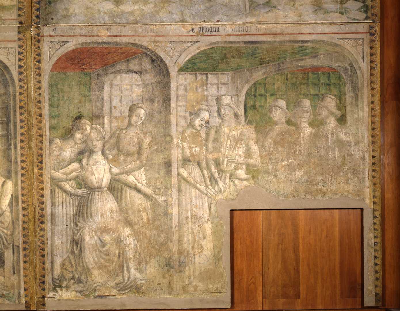 Milano, Pinacoteca del Castello Sforzesco, inv. n. 1347/22. Le donne aiutano Griselda ad indossare nuovamente le vesti nobiliari; Griselda riceve gli omaggi da parte di suo figlio e del resto della corte.