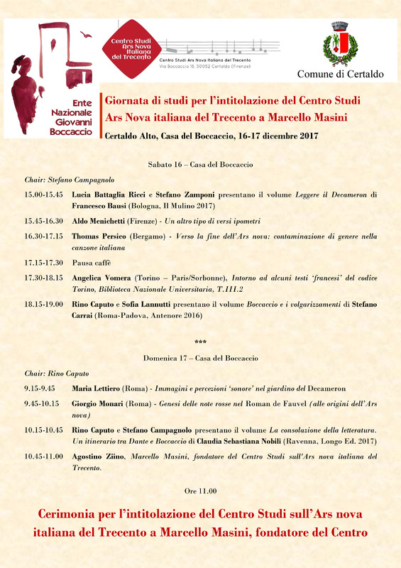 11.00 Cerimonia per l’intitolazione del Centro Studi sull’Ars nova italiana del Trecento a Marcello Masini, fondatore del Centro Casa del Boccaccio - Certaldo Alta
