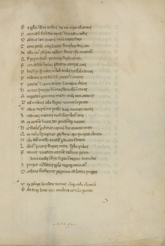 Membr., cc. 8 (mutilo), mm. 220 × 150. Giuseppe di Exeter, "Ylias Frigii Daretis" (I 1-387). Databile attorno al 1355. Di mano del B. anche la manicula in margine alla c. 3r.