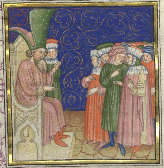 Miniatore lombardo (1450 c.), Il re si rivolge al consiglio