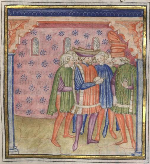 Miniatore lombardo (1450 c.), Colloquio tra Florio e i suoi amici