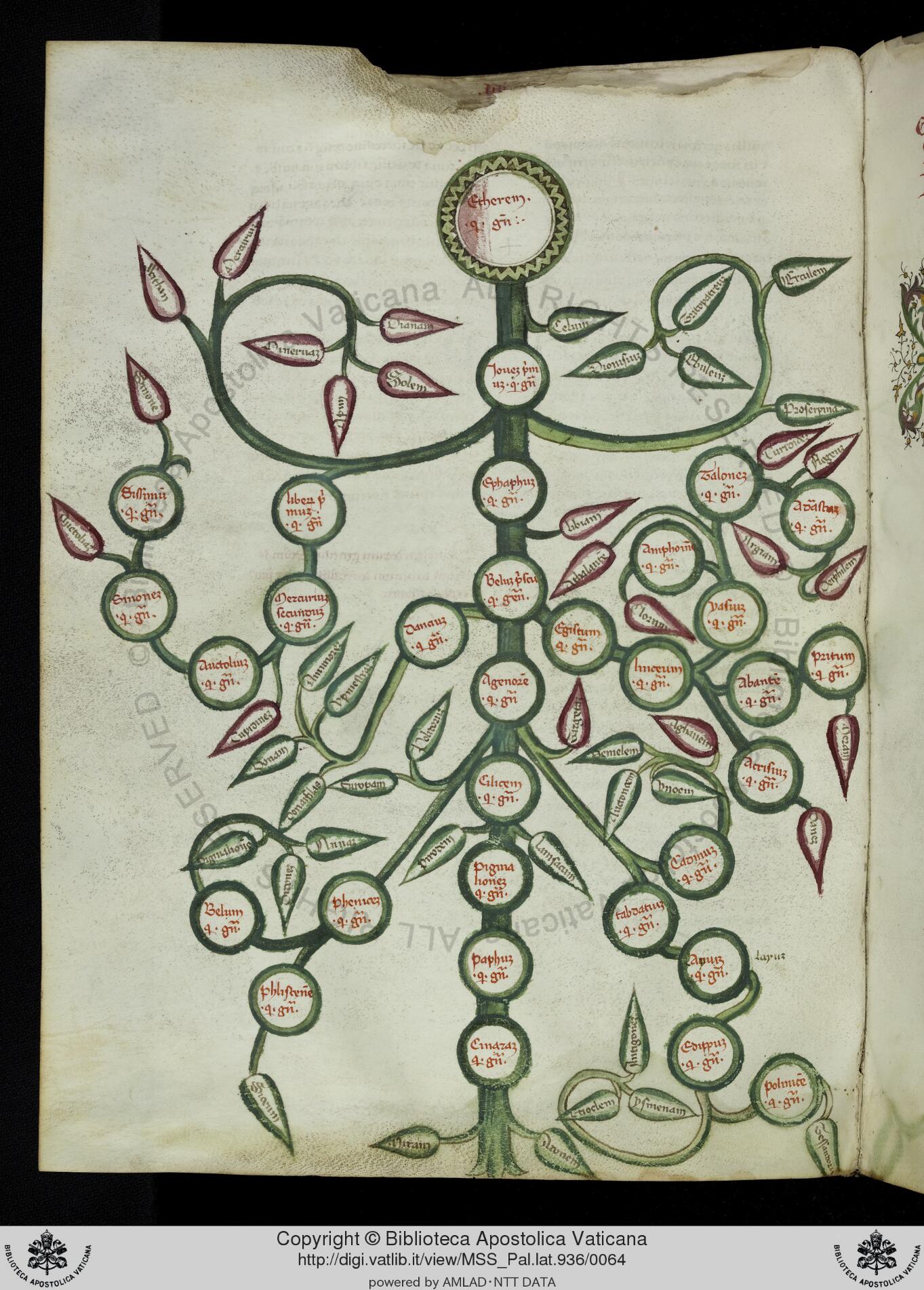 Città del Vaticano, BAV, Pal. lat. 936, f. 29v. Albero genealogico di Etere.