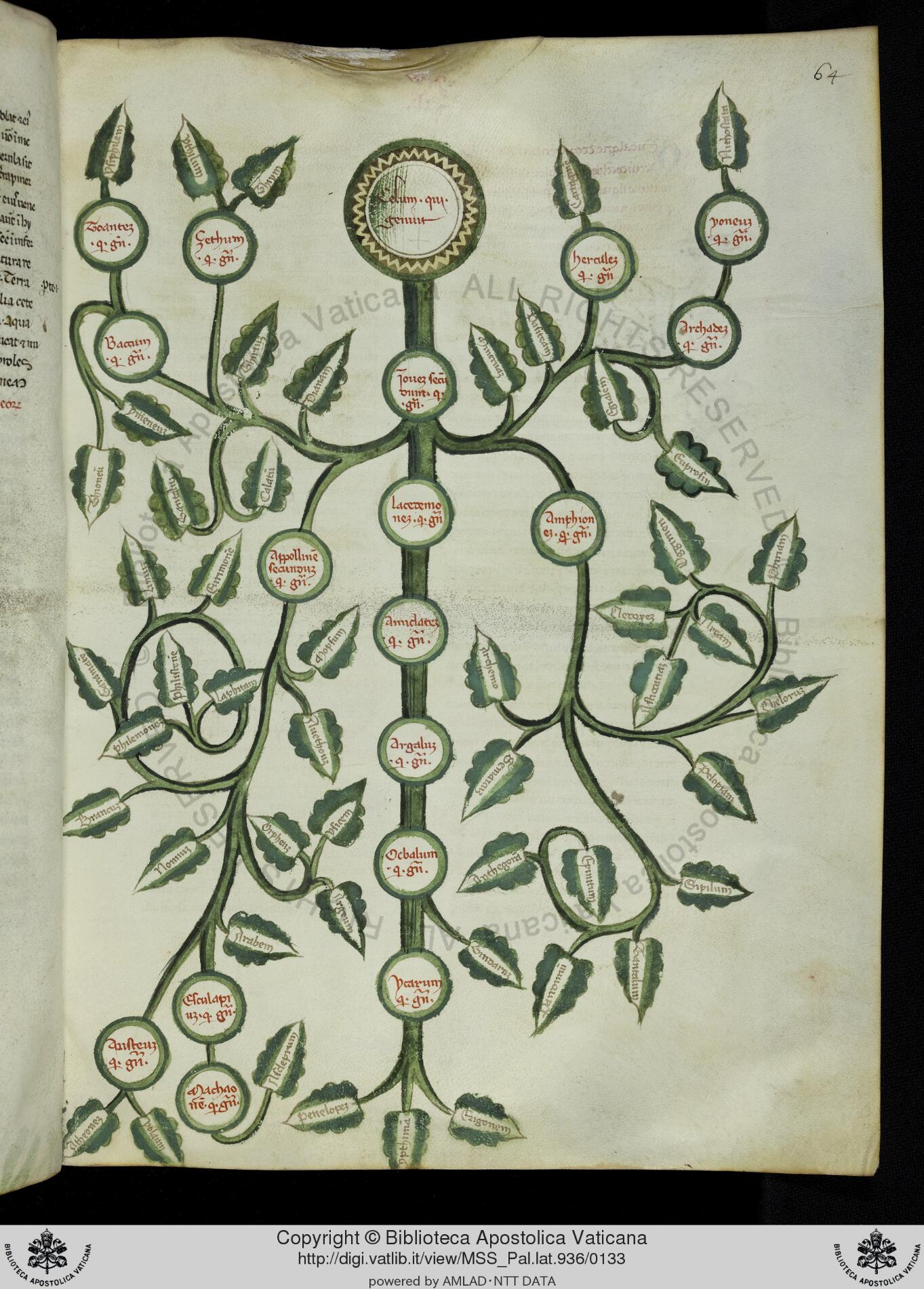 Città del Vaticano, BAV, Pal. lat. 936, f. 64r. Albero genealogico di Giove secondo.