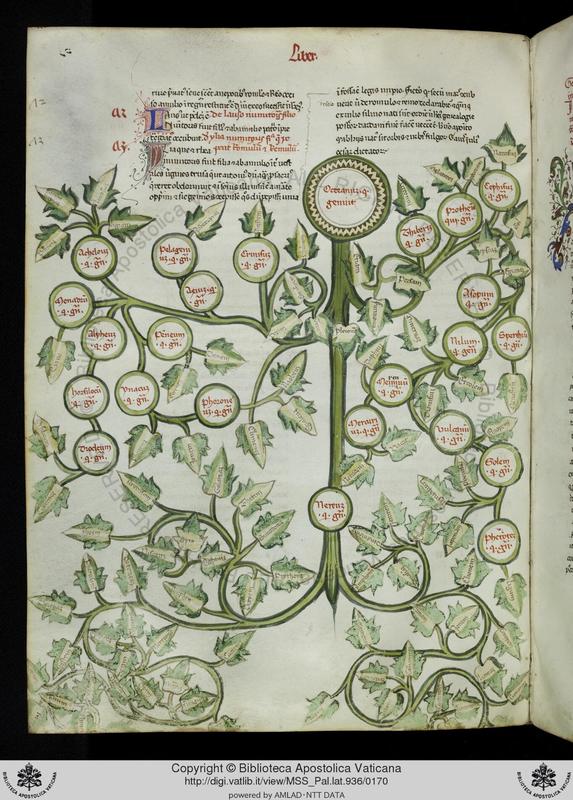 Città del Vaticano, BAV, Pal. lat. 936, f. 82v. Albero genealogico di Oceano.