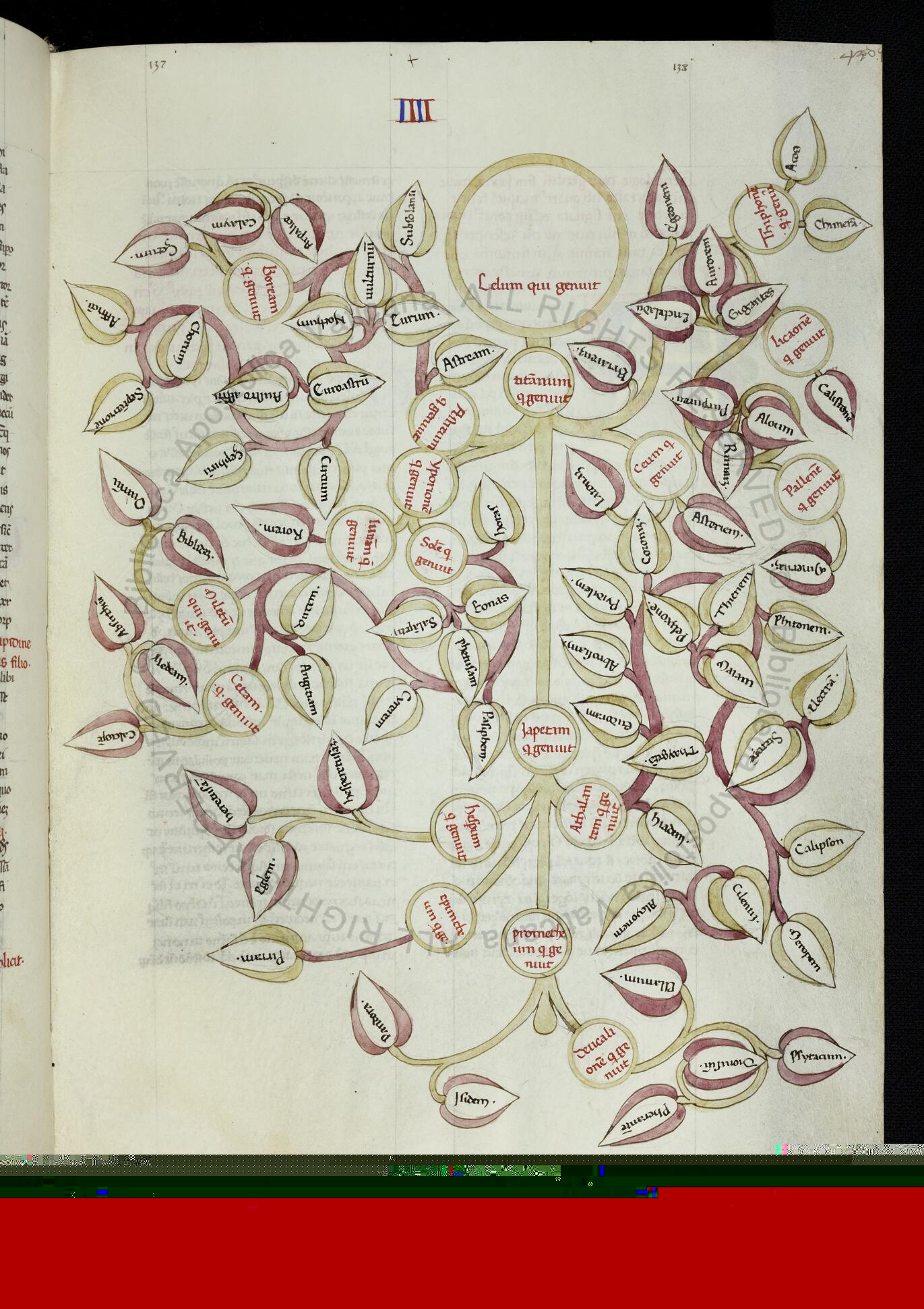 Città del Vaticano, BAV, Pal. lat. 937, f. 43r. Albero genealogico di Celo e Titano.