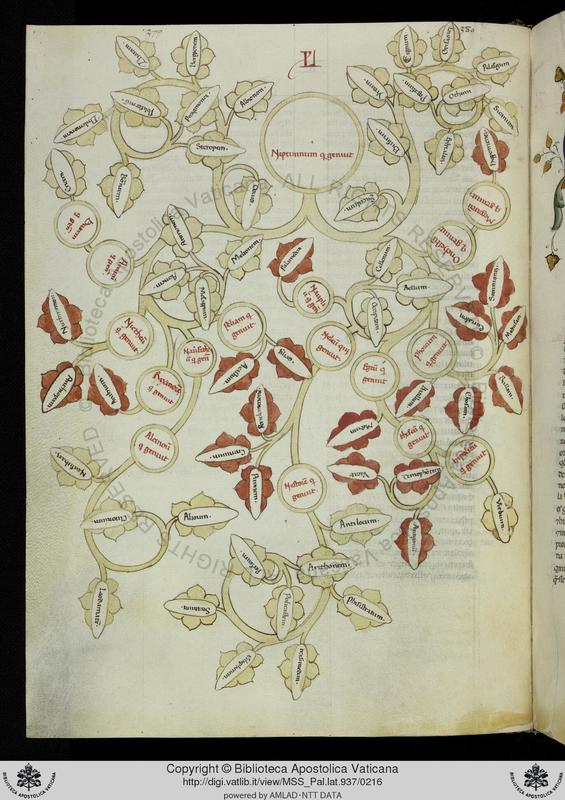 Città del Vaticano, BAV, Pal. lat. 937, f. 105v. Albero genealogico di Nettuno.