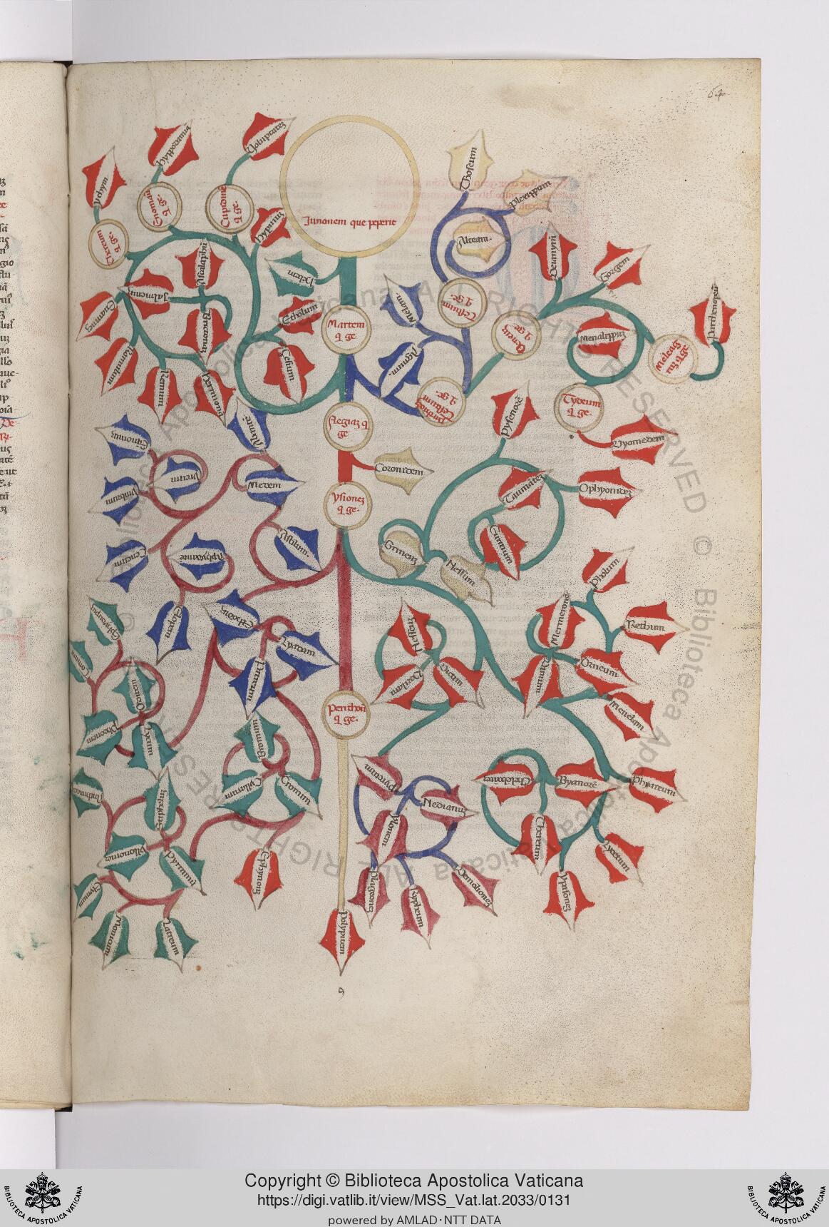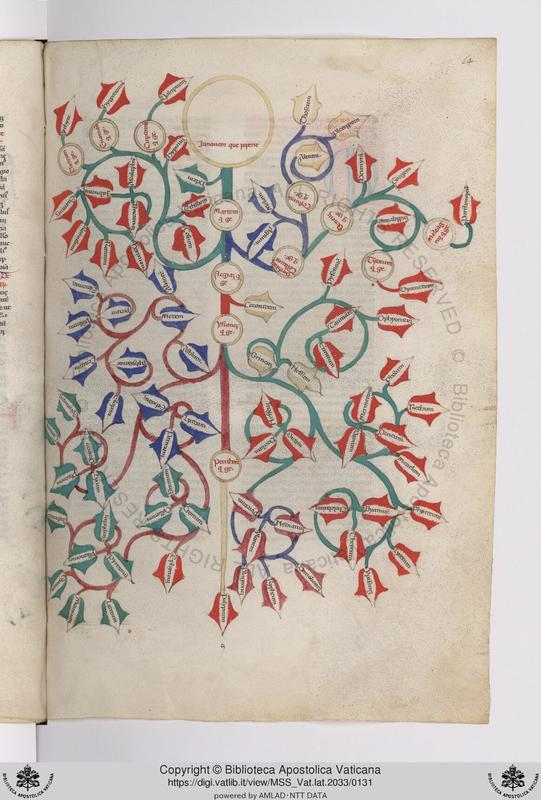 Città del Vaticano, BAV, Vat. lat. 2033, f. 64r. Albero genealogico di Giunone.