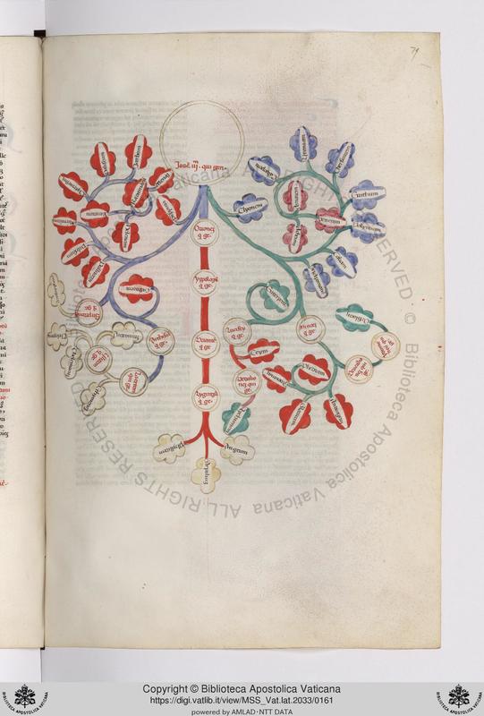 Città del Vaticano, BAV, Vat. lat. 2033, f. 79r. Albero genealogico di Giove.
