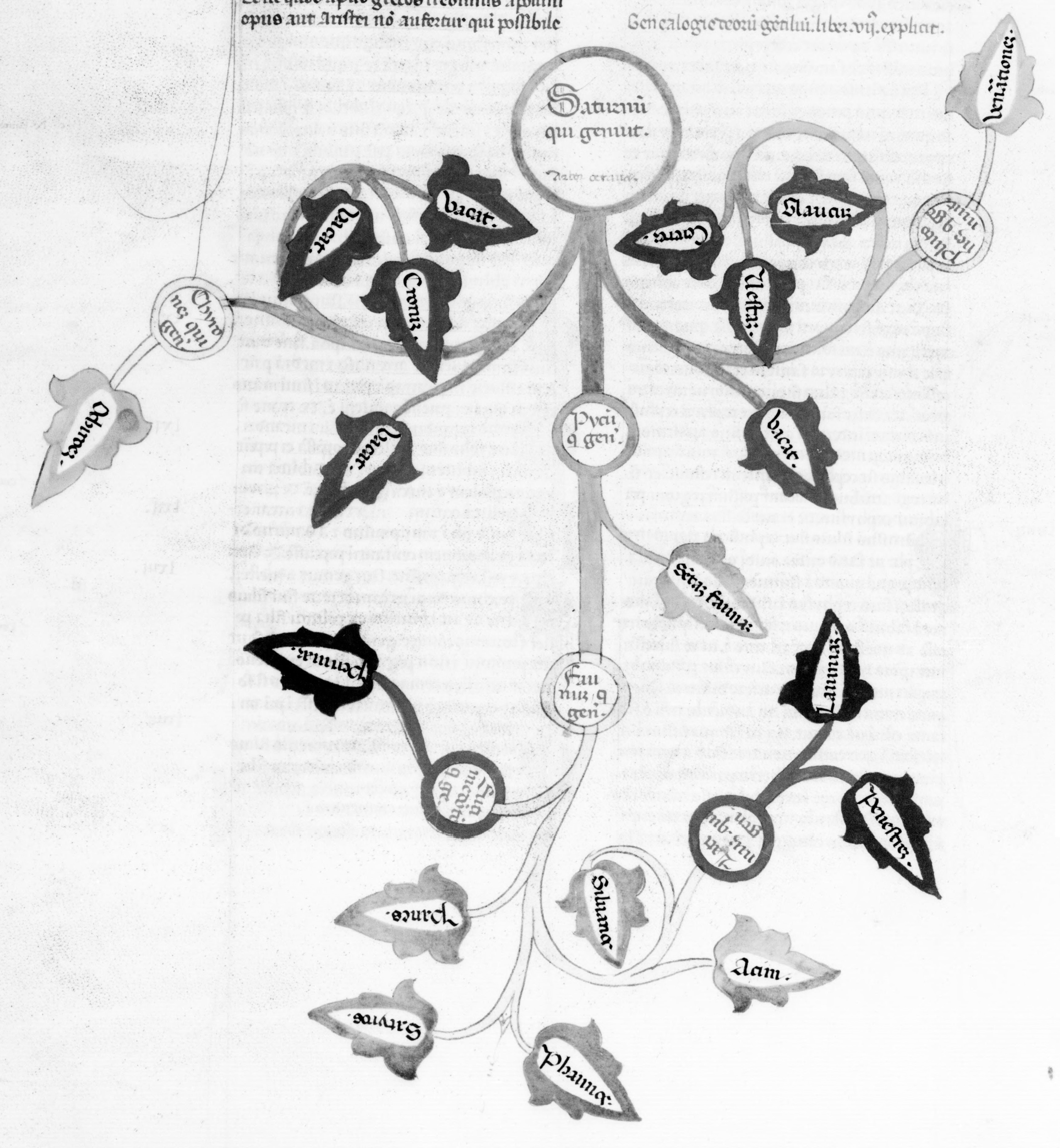 Parigi, Bibliothèque Nationale de France, Lat. 7877, f. 88v. Albero genealogico di Saturno.