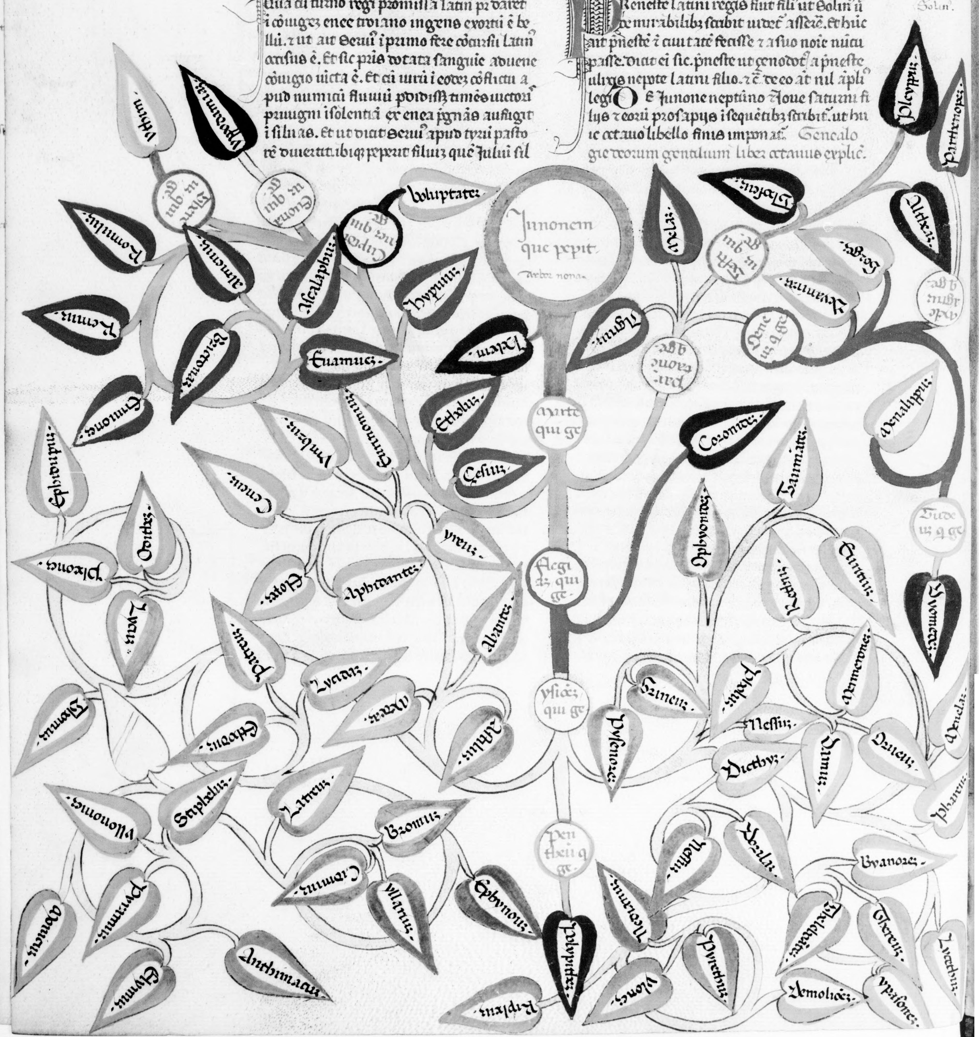 Parigi, Bibliothèque Nationale de France, Lat. 7877, f. 94v. Albero genealogico di Giunone.