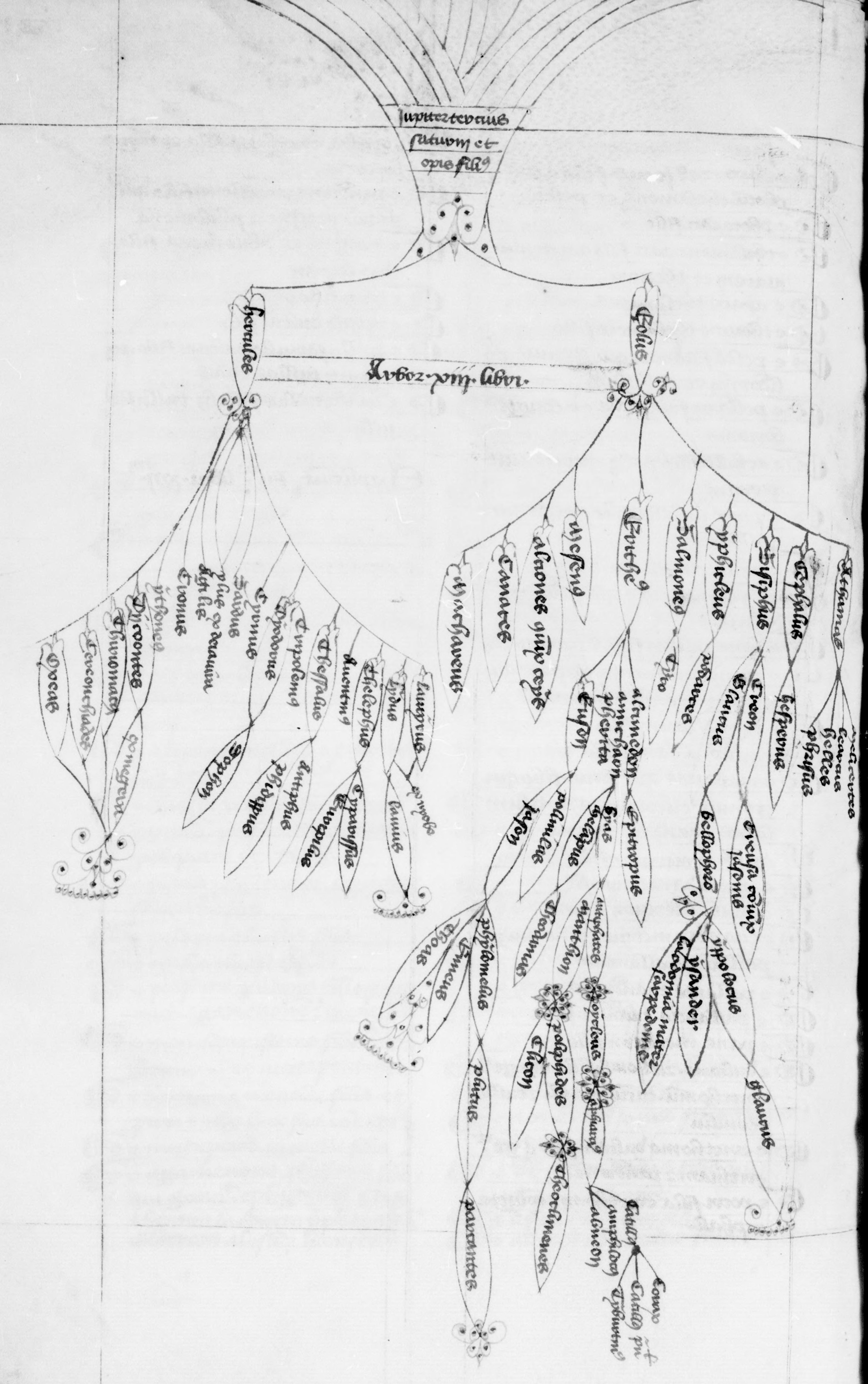 Parigi, Bibliothèque Nationale de France, Lat. 14636, f. 212v. Albero genealogico di Ercole e Eolo.