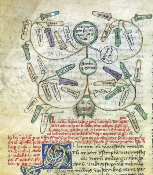 València, Universitat de València. Biblioteca Històrica, BH Ms. 291, f. 13v. Albero genealogico di Demogorgone.