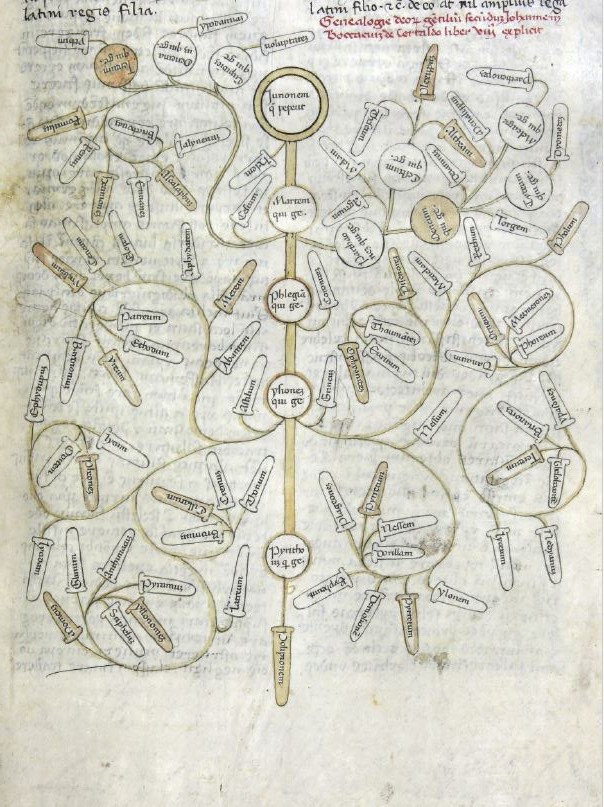 València, Universitat de València. Biblioteca Històrica, BH Ms. 291, f. 91r. Albero genealogico di Giunone.