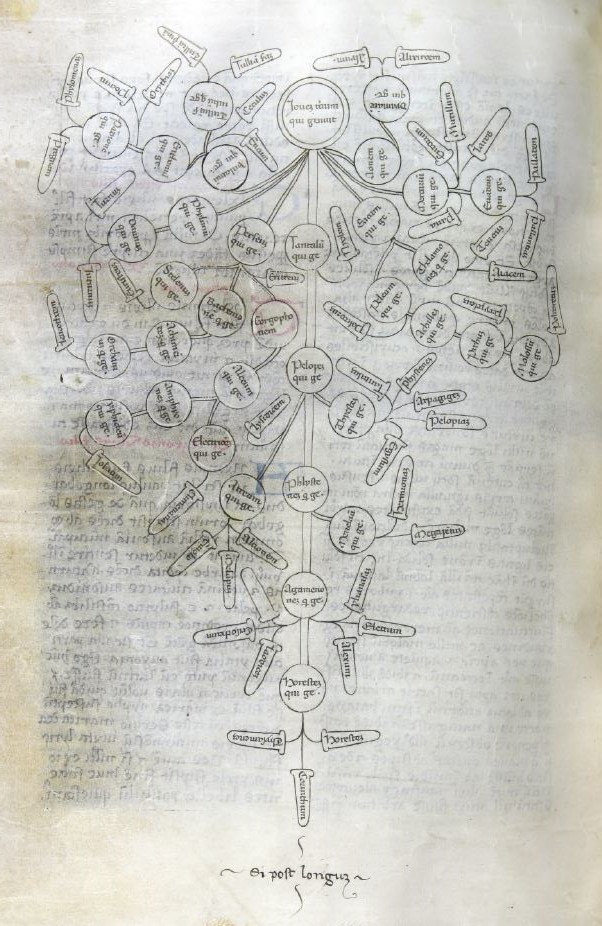 València, Universitat de València. Biblioteca Històrica, BH Ms. 291, f. 128v. Albero genealogico di Giove terzo.