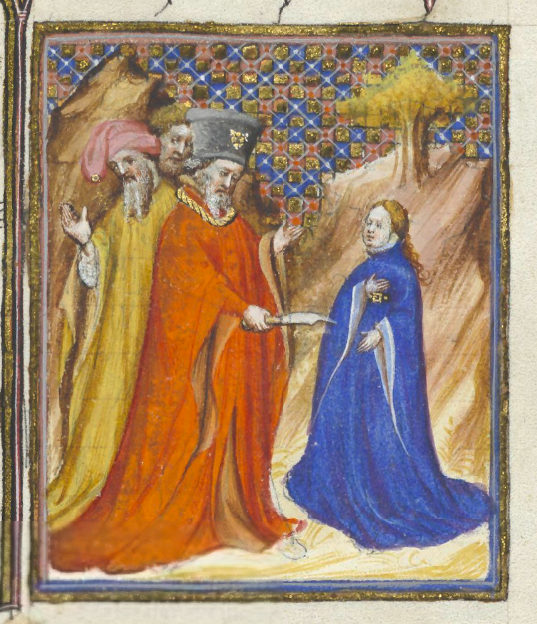 Bruxelles, Koninklijke Bibliotheek van België, 9509, f. 90v. Virginio uccide la figlia Virginia per salvarla dalla schiavitù.