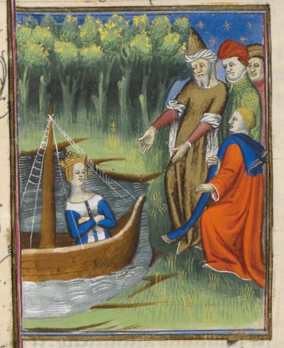 Londra, British Library, Royal 20 C V, f. 17v. Iside viene condotta in nave verso l'Egitto.