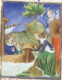 Maestro del Boezio (1405 c.), Isifile spinge la barca del padre Toante verso il largo