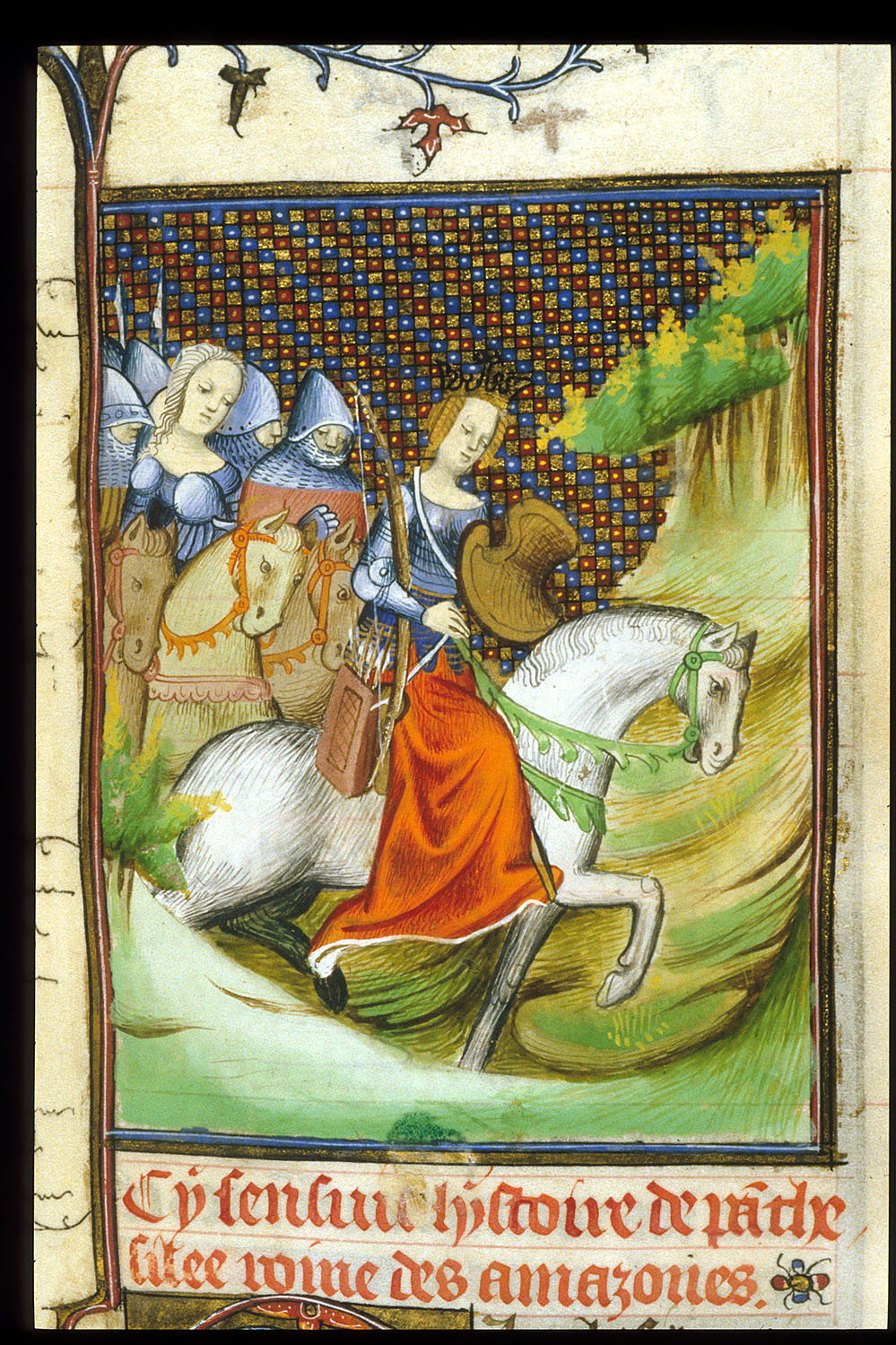 Maestro del Boezio (1405 c.), Pentesilea guida un esercito di Amazzoni
