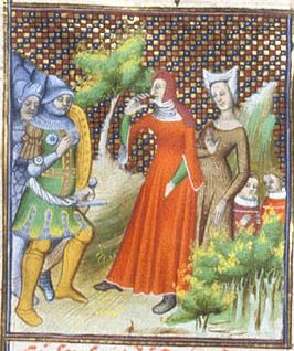 Londra, British Library, Royal 20 C V, f. 87v. Veturia, accompagnata dalla nuora Volumnia con i due giovani nipoti, dissuade il figlio Coriolano dal distruggere Roma.