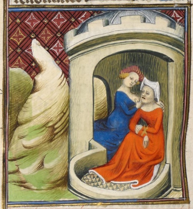 Londra, British Library, Royal 20 C V, f. 102v. Una giovane donna romana offre il seno alla madre in prigione per sfamarla.