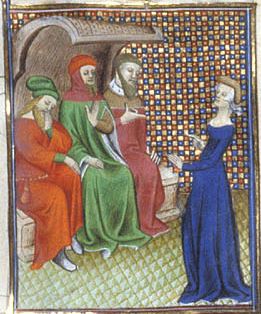 Londra, British Library, Royal 20 C V, f. 127v. Ortensia supplica i triumviri.
