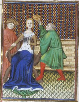 Londra, British Library, Royal 20 C V, f. 157r. L'imperatrice Irene viene destituita dal figlio e privata della corona.