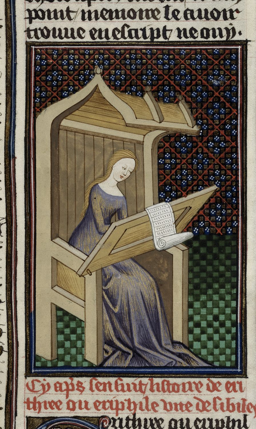 Londra, British Library, Royal 16 G V, f. 23r. La sibilla Eritrea intenta a scrivere.