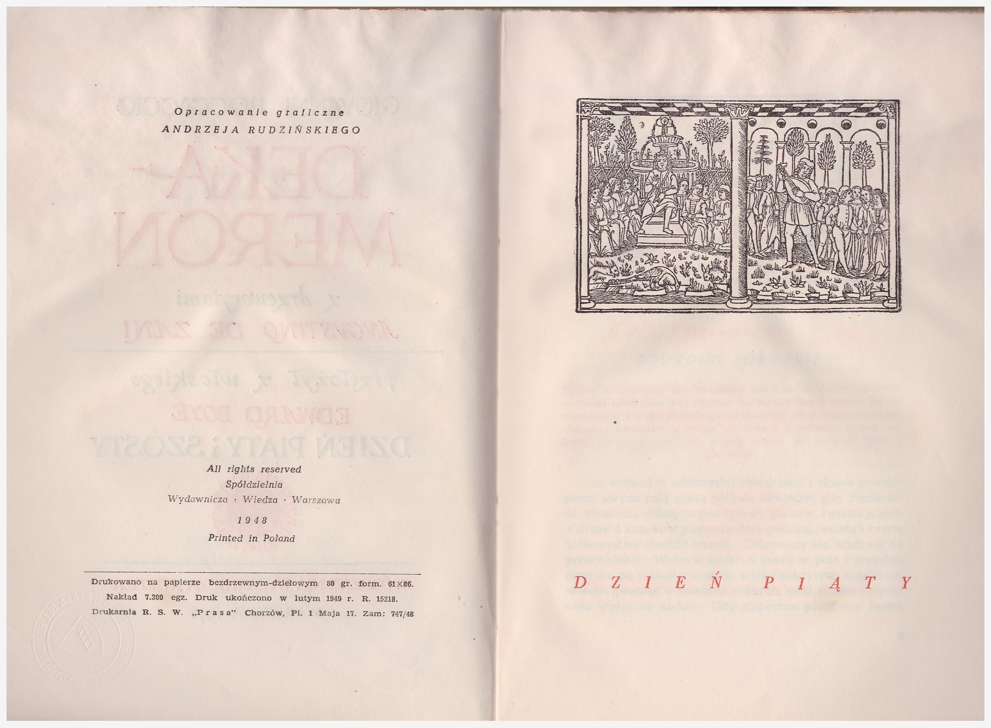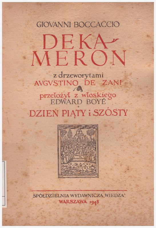 Dekameron. III / z drzeworytami Augustino de Zani ; przełożył z włoskiego Edward Boye ; przedmową opatrzył, tekst poprawił iuzupełnił Mieczyslaw Brahmer