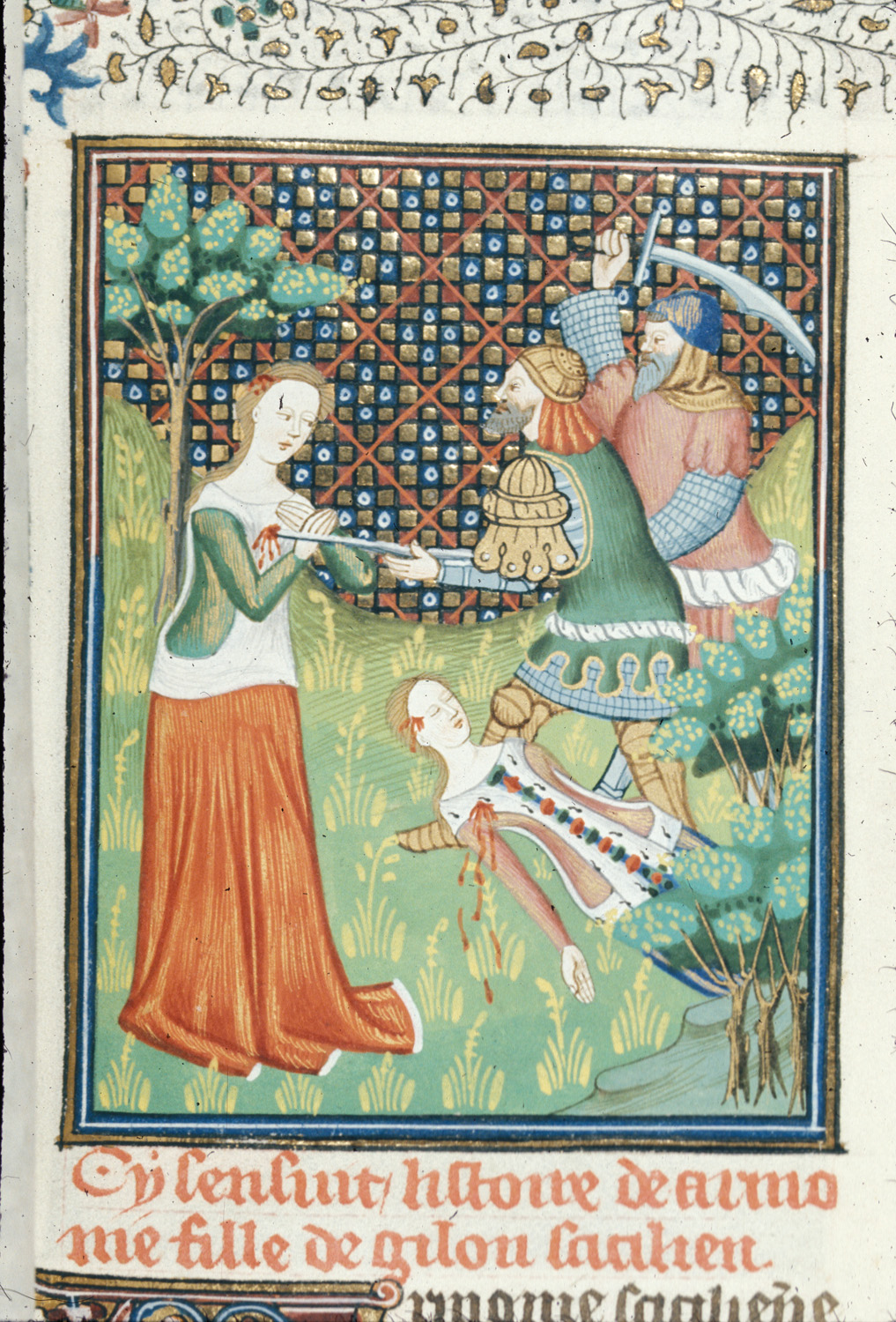 Londra, British Library, Royal 16 G V, f. 82r. Armonia viene riconosciuta e assassinata dopo la morte della giovane schiava che ne aveva preso il posto.