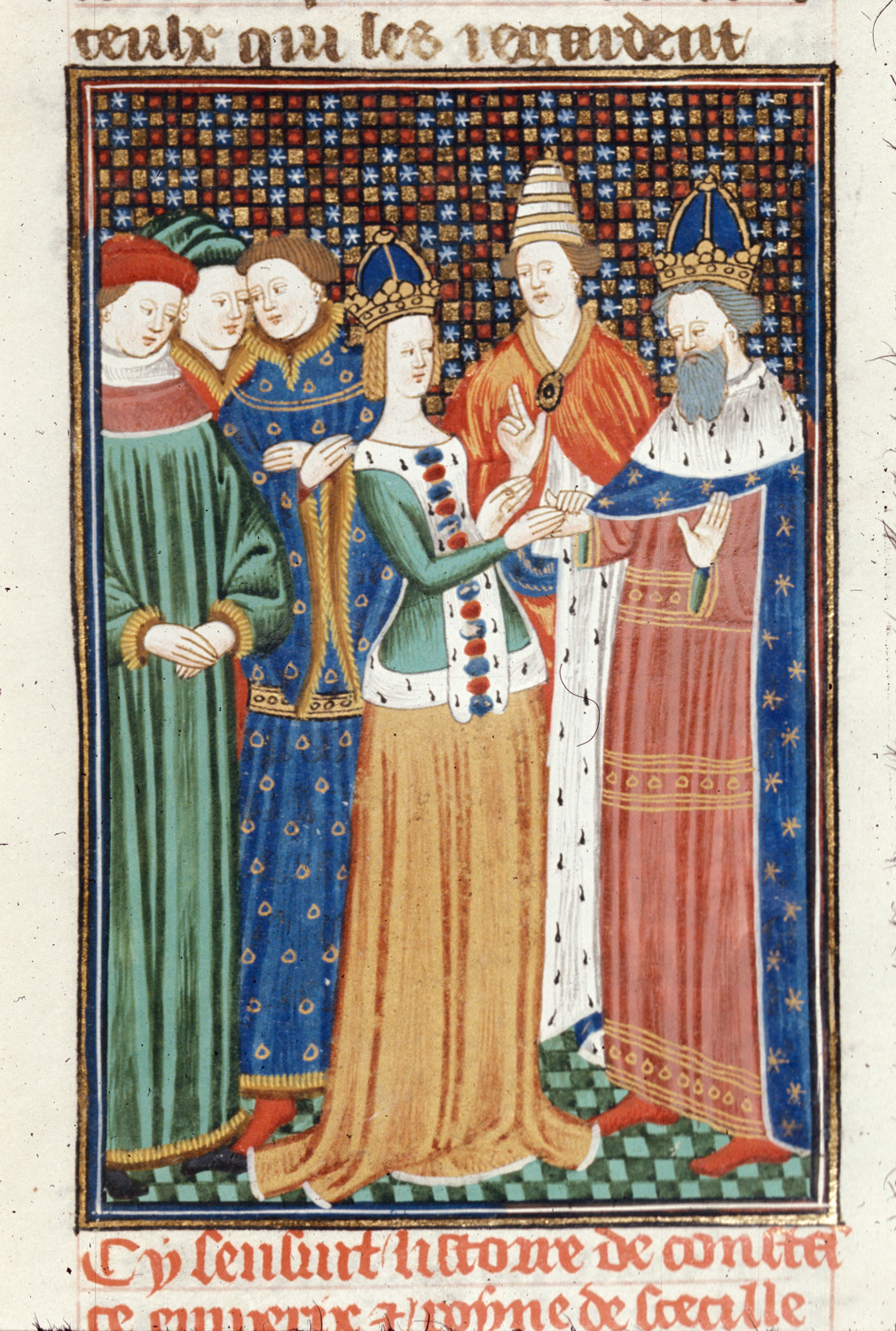 Londra, British Library, Royal 16 G V, f. 123r. Costanza d'Altavilla sposa l'imperatore Enrico VI.