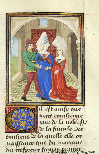 New York, Pierpont Morgan Library, M 381, f. 43r. Emilia Terza perdona il tradimento del marito Scipione con una serva.